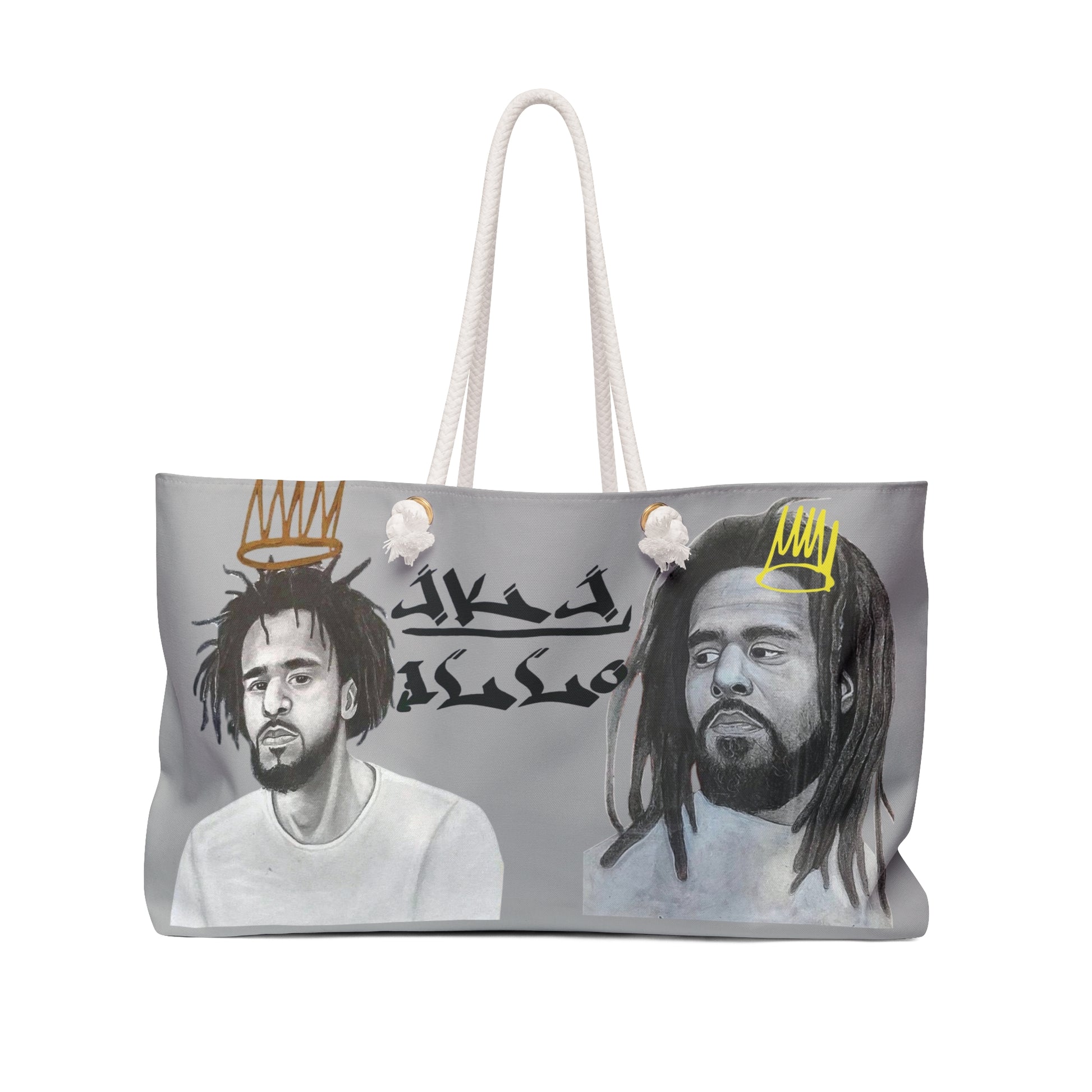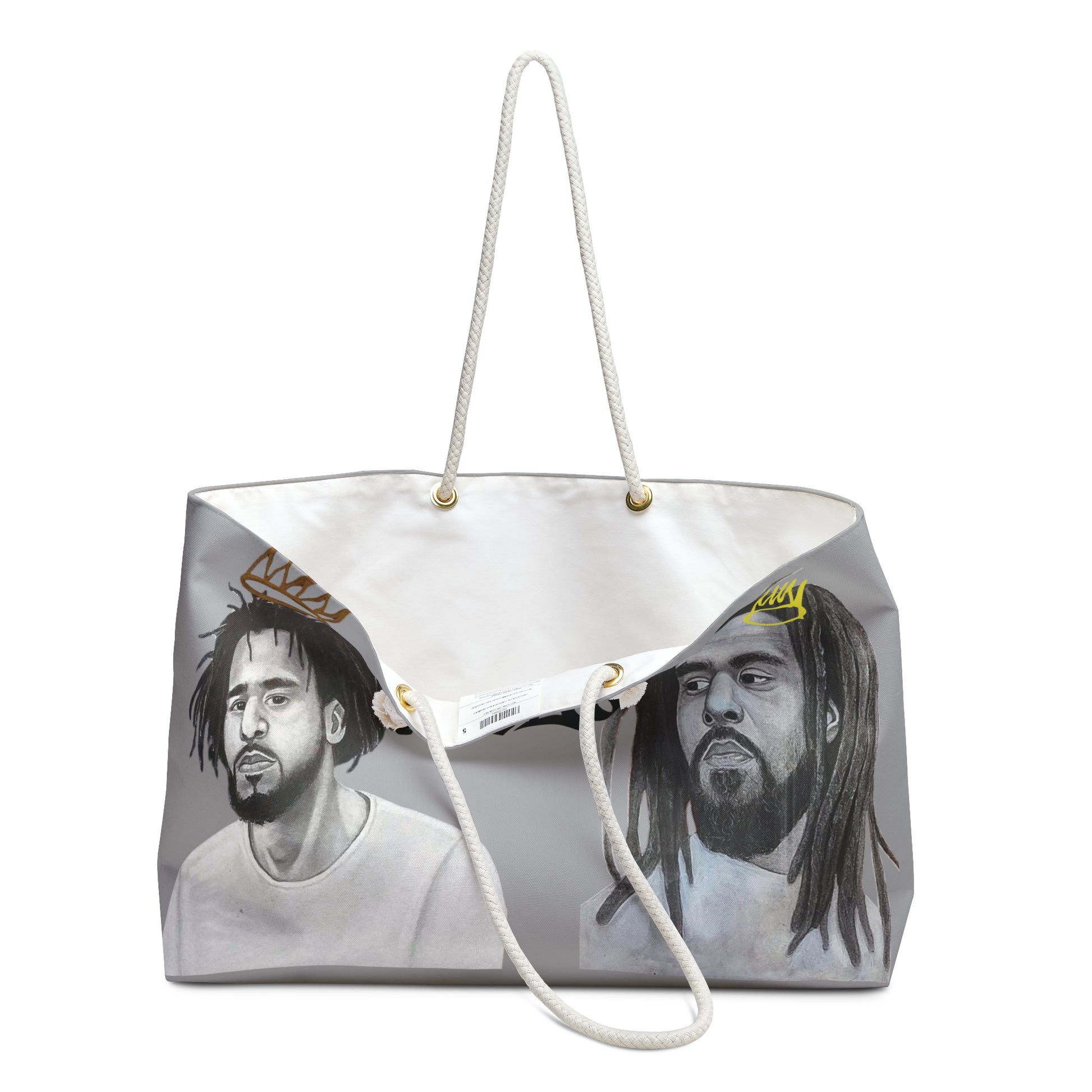 Designed a bag for J.Cole fans. Our oversized Weekender Tote is perfect for your weekend at the beach or in town. The wide-mouthed, durable bag holds a generous amount of personal items and is easily held by its thick rope handles.